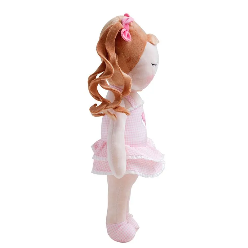 Chegou uma das bonecas mais pedidas: a Angela Cacheada! A Boneca Metoo Angela Candy Color foi desenvolvida exclusivamente para o Brasil e é indicada para crianças de todas as idades. Feita inteiramente em pelúcia, vem com roupinha de praia e lacinho em plush, e uma sapatilha super fofa que dá um charme todo especial! Uma excelente opção para decorar ambientes infantis e presentear crianças e bebês. Perfeita para dormir abraçadinha, os bebês adoram. E o melhor: são colecionáveis. Não deixe de conferir os outros designs. ATENÇÃO: Este produto é original Metoo. Possui etiqueta em português, selo antifraude e toda a segurança comprovada pelo INMETRO. ESPECIFICAÇÕES: – Recomendado para crianças de todas as idades a partir de 0 meses; – Este brinquedo não tem restrição de idade; – Toque aveludado e olhos fechados, pensado para acalmar os bebês. COMPOSIÇÃO: – 100% poliéster e enchimento 100% fibra de poliéster. MEDIDAS APROXIMADAS: Boneca 33 cm: – Cabeça até corpo: 33 cm. – Cabeça até pé: 36 cm. LIMPEZA E MANUTENÇÃO: – Aconselhamos lavar à mão. Caso use a máquina de lavar, indicamos rotação leve e temperatura máxima de 30º; – Não limpar a seco; – Não usar a secadora.