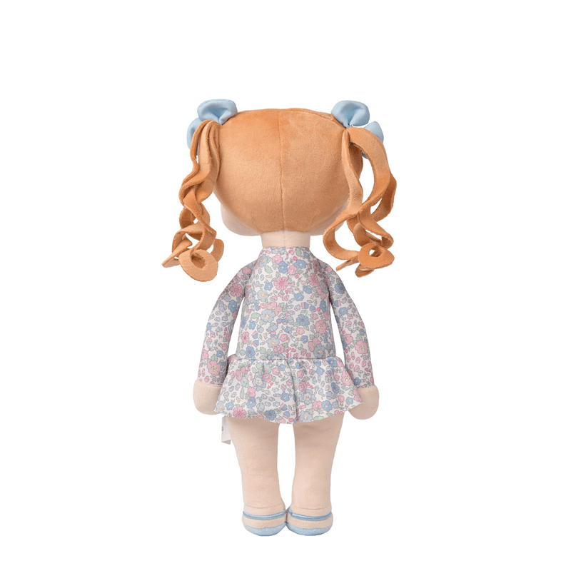 A Boneca Angela Mari é pura delicadeza! Com 33 cm, ela é super macia, leve e perfeita para acompanhar os pequenos em todas as brincadeiras. Seu vestido floral e laços azuis trazem um charme especial, tornando-a uma ótima opção para presentear.