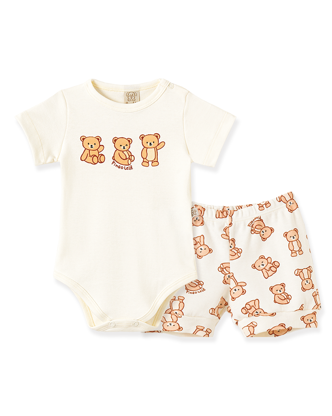 O shorts acompanha a proposta com estampa rotativa de ursinhos, combinando perfeitamente com o body. Possui cós com elástico, proporcionando conforto e liberdade de movimentos para o bebê.