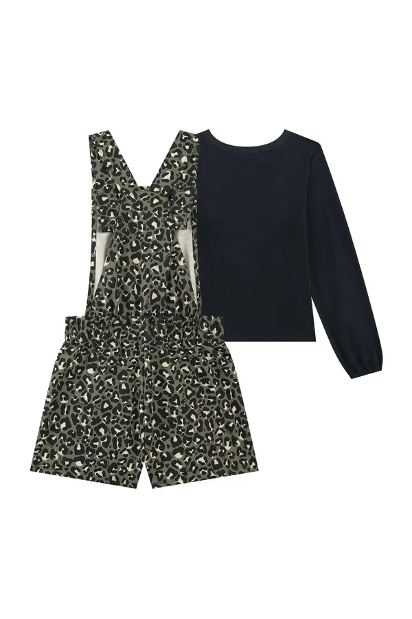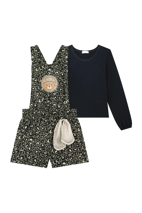 O conjunto de blusa em cotton e jardineira em sarja com elastano, é a escolha perfeita para as meninas que buscam conforto máximo sem abrir mão do estilo no dia! Disponível em uma cor super estilosa – preto – ela é uma peça essencial, versátil e super confortável para compor diversos looks e deixar o seu inverno ainda mais estiloso. O patch sublimado e o lenço removível, adicionam um charme especial à peça.