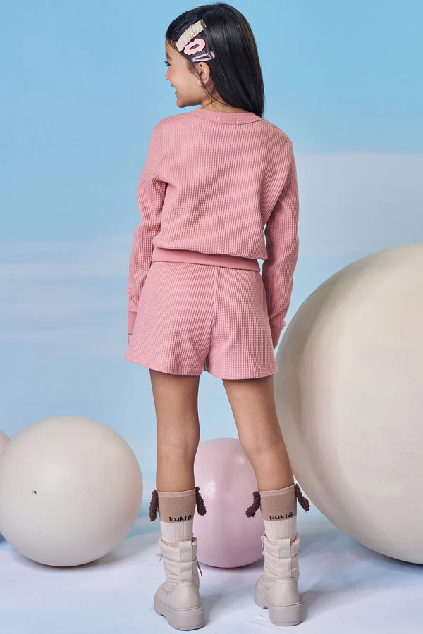 Conjunto de Blusão Boxy e Shorts em Moletom Big Waffle