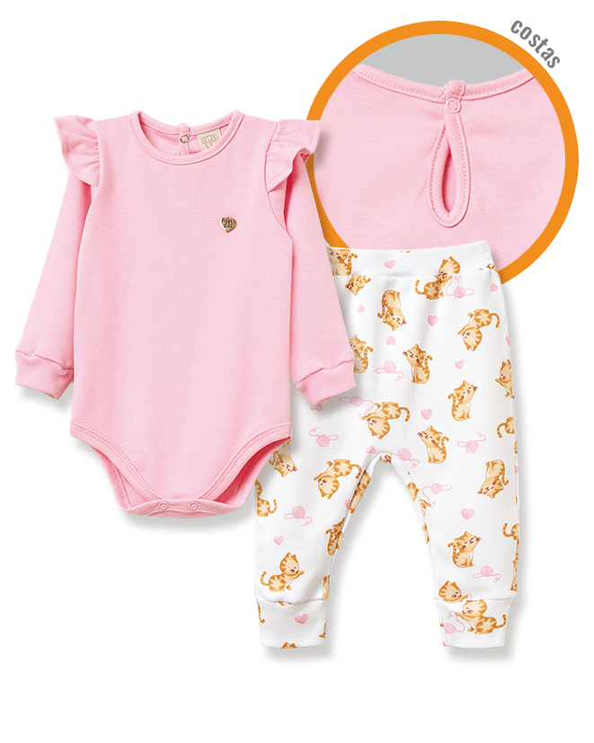 Delicado e cheio de charme, este conjunto infantil é perfeito para deixar os dias da sua pequena ainda mais confortáveis e encantadores! Com uma proposta romântica e moderna, ele cria produções cheias de personalidade e fofura.