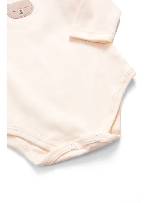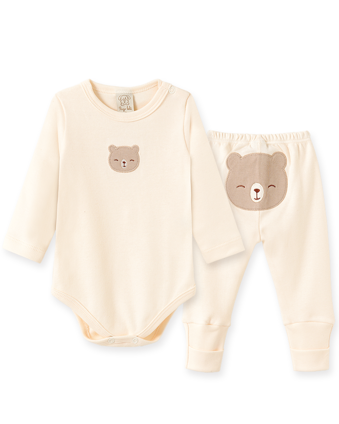 Confeccionado em 100% algodão, proporciona um toque macio e suave na pele sensível do bebê, garantindo respirabilidade e conforto durante todo o dia. O body de manga longa conta com fechamento por botões de pressão, facilitando na hora de vestir e nas trocas. A calça possui elástico confortável na cintura e um charme especial com estampa delicada de ursinho, trazendo ainda mais fofura ao look.