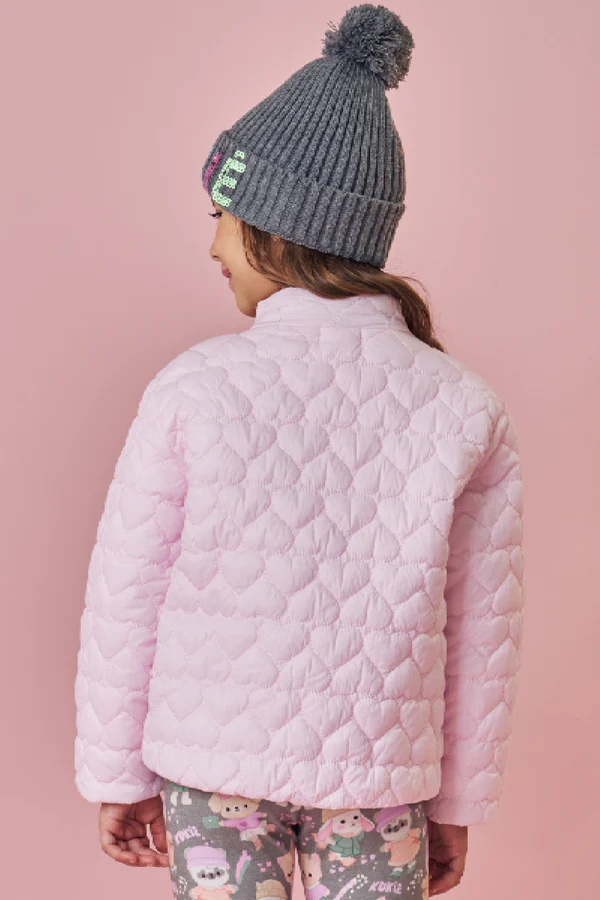 A jaqueta puffer em nylon matelassê coração é a escolha perfeita para as meninas que buscam conforto máximo sem abrir mão do estilo no dia! ela é uma peça essencial, versátil e super confortável para compor looks casuais, ou para relaxar.