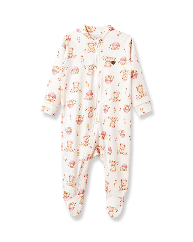 Confeccionado em tecido macio e confortável, possui manga longa e modelagem que garante liberdade de movimentos. A estampa de ursinhas, cogumelos e pequenos detalhes florais traz um toque lúdico e delicado à peça, deixando o visual ainda mais gracioso.