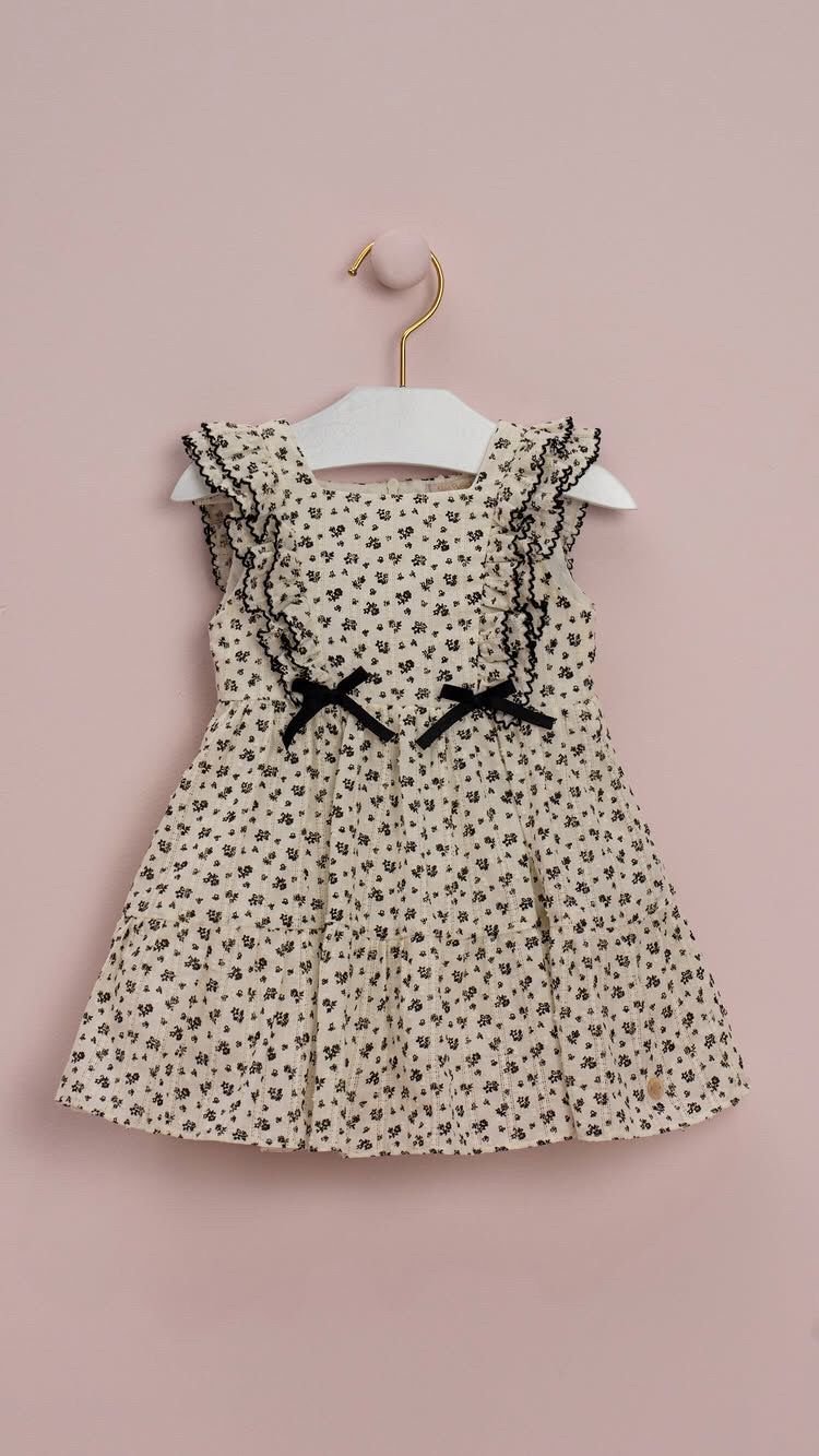 Vestido Infantil com Estampa Floral e Detalhes em Preto
