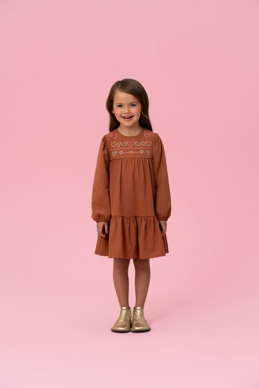 O modelo conta com mangas longas com punho em elástico, decote redondo e modelagem soltinha com recorte franzido, trazendo movimento e um visual moderno. O destaque fica por conta do bordado de corações na parte frontal, que adiciona um toque romântico e encantador à peça.